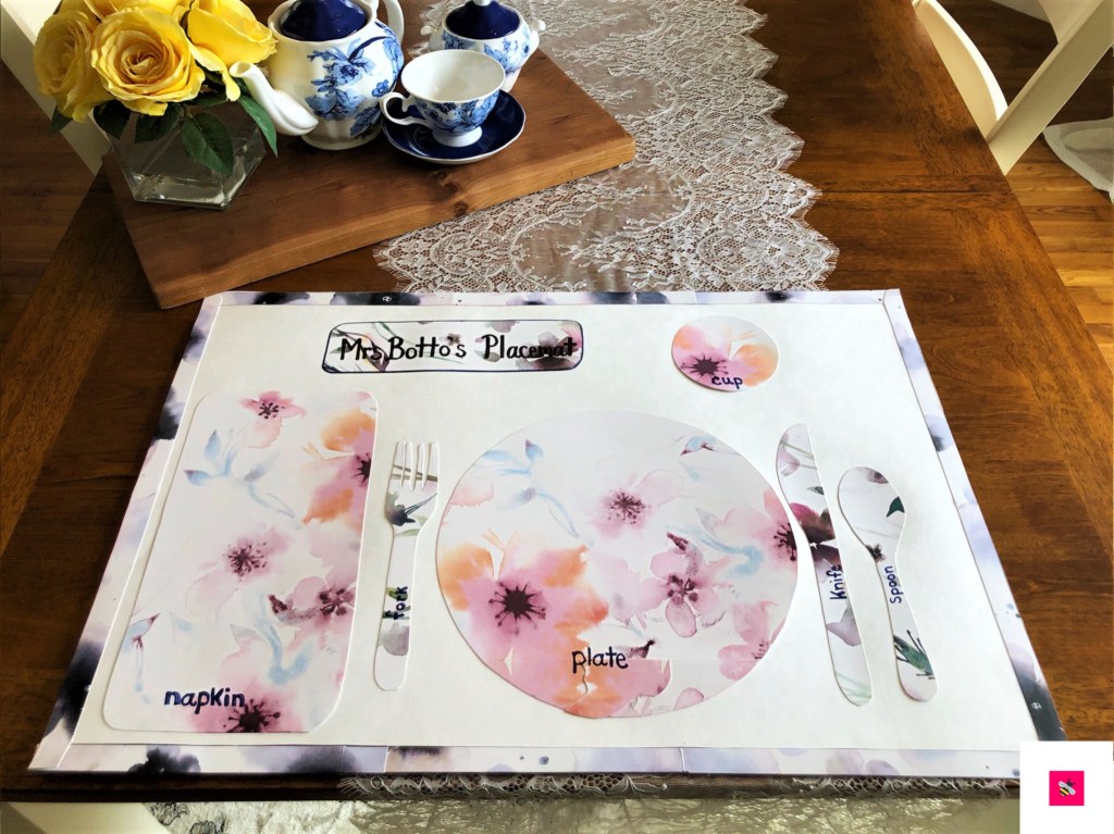 In this activity, your honeybee will set the table for a family meal! The goal is to understand the proper placement of dishes and silverware on a table placemat. Yes, there are printable placemats that serve as a cheat sheet for table setting. However, we want our honeybees to learn by doing. This hands-on approach focuses on task initiation, fine-motor skills, and tactile learning. In addition, your honeybee will tangibly engage with this life skill, while creating a learning material that they can be proud of.
