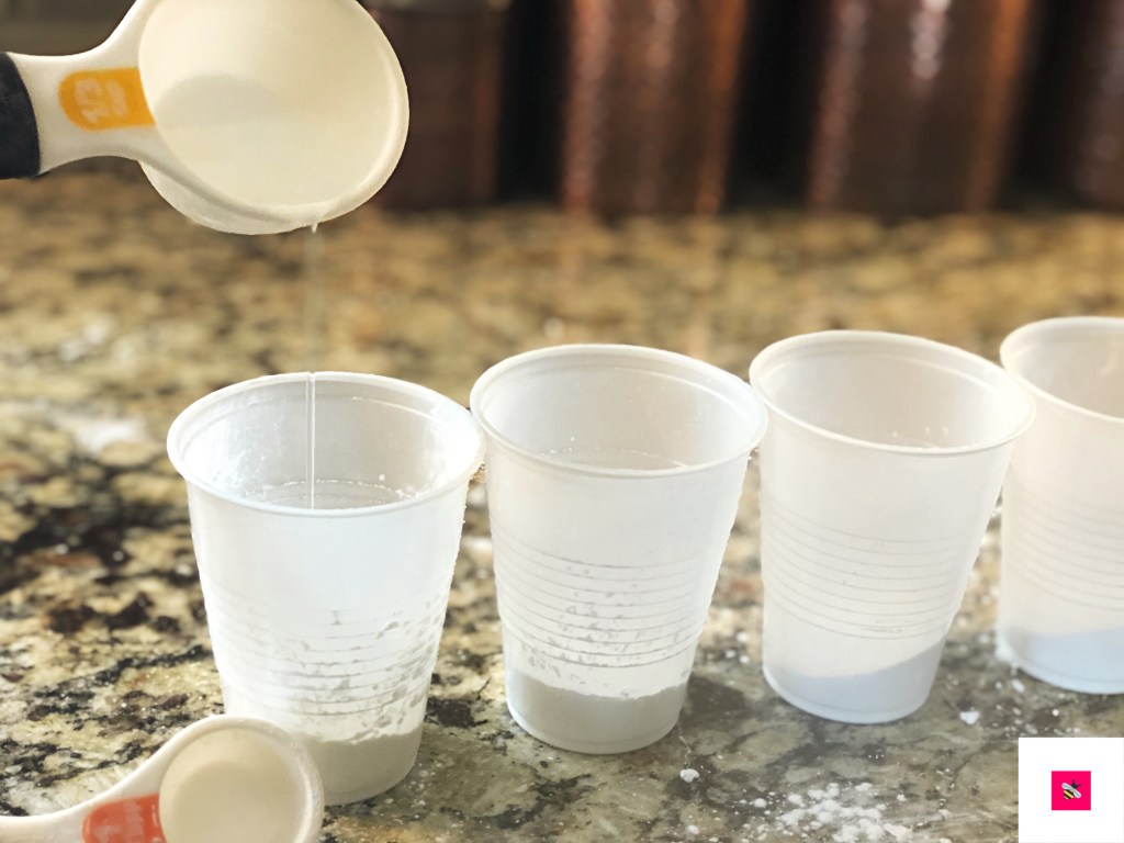 1. Mix equal parts cornstarch and water into cups (2 tablespoons each)